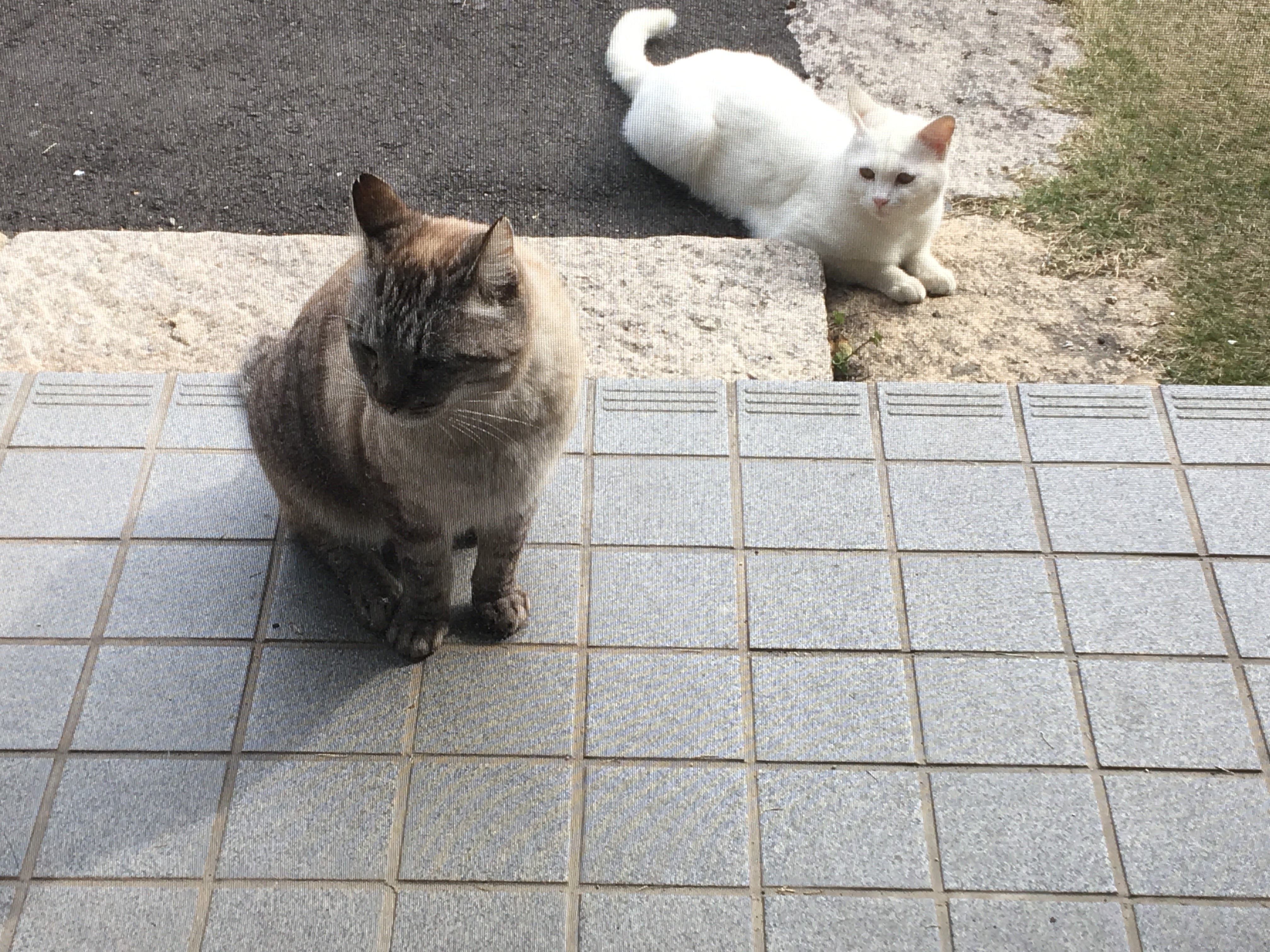 玄関先をのぞくと2匹の猫たちが座っていて癒されました。