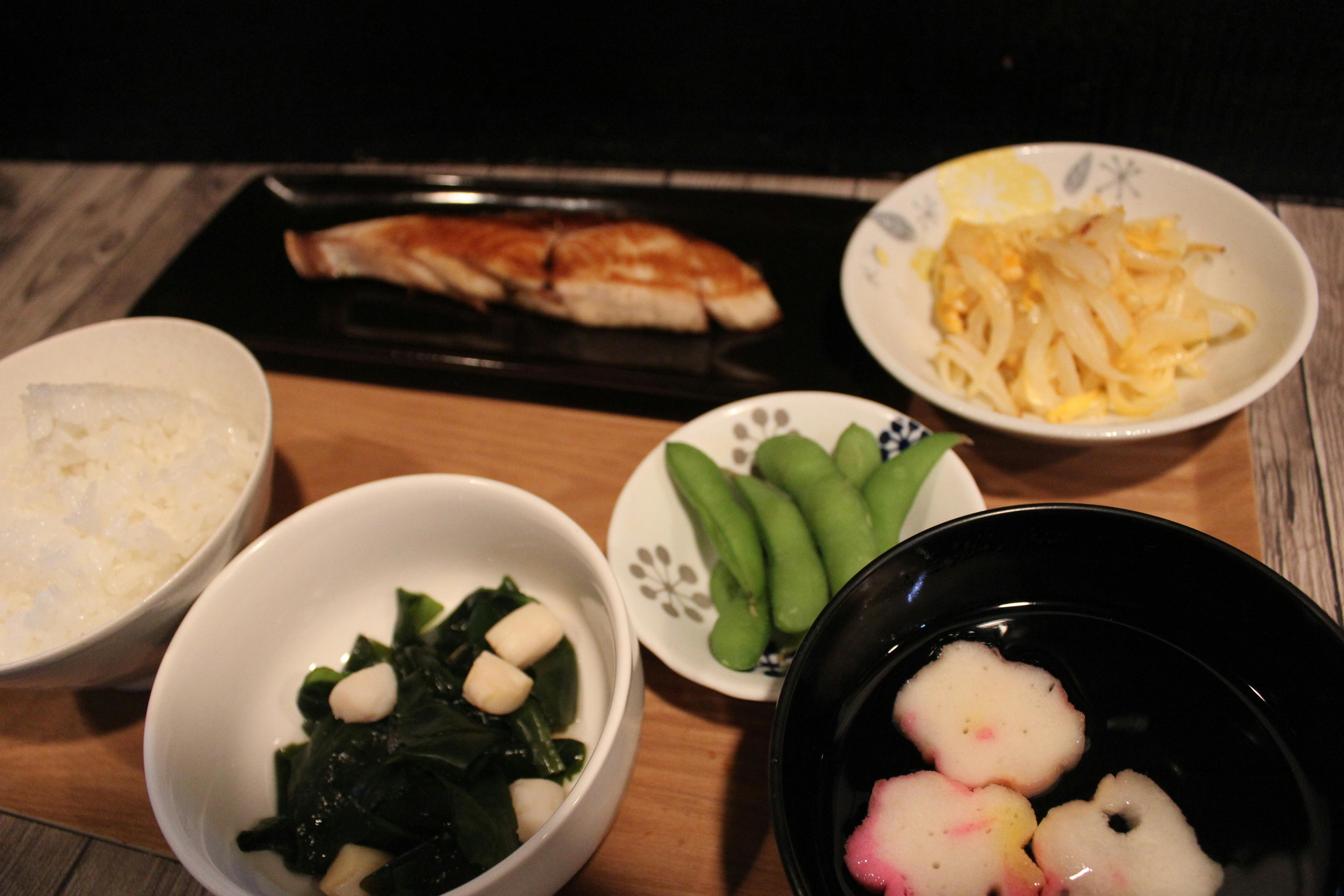 ブリ焼き定食(例)ご飯はまだ資金が来てからの提供ですので低糖質ご飯ではありません。
