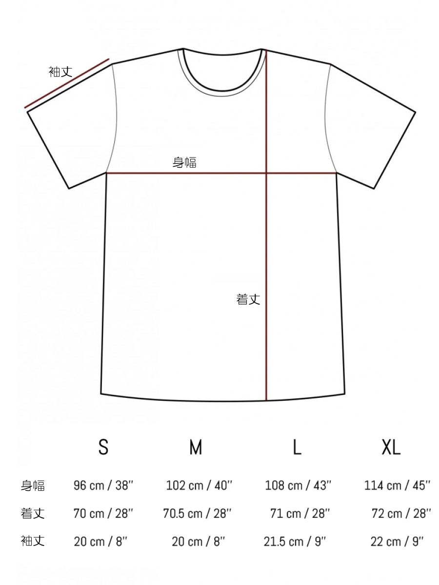 *ユニセックスTシャツサイズ表記:センチ / インチ