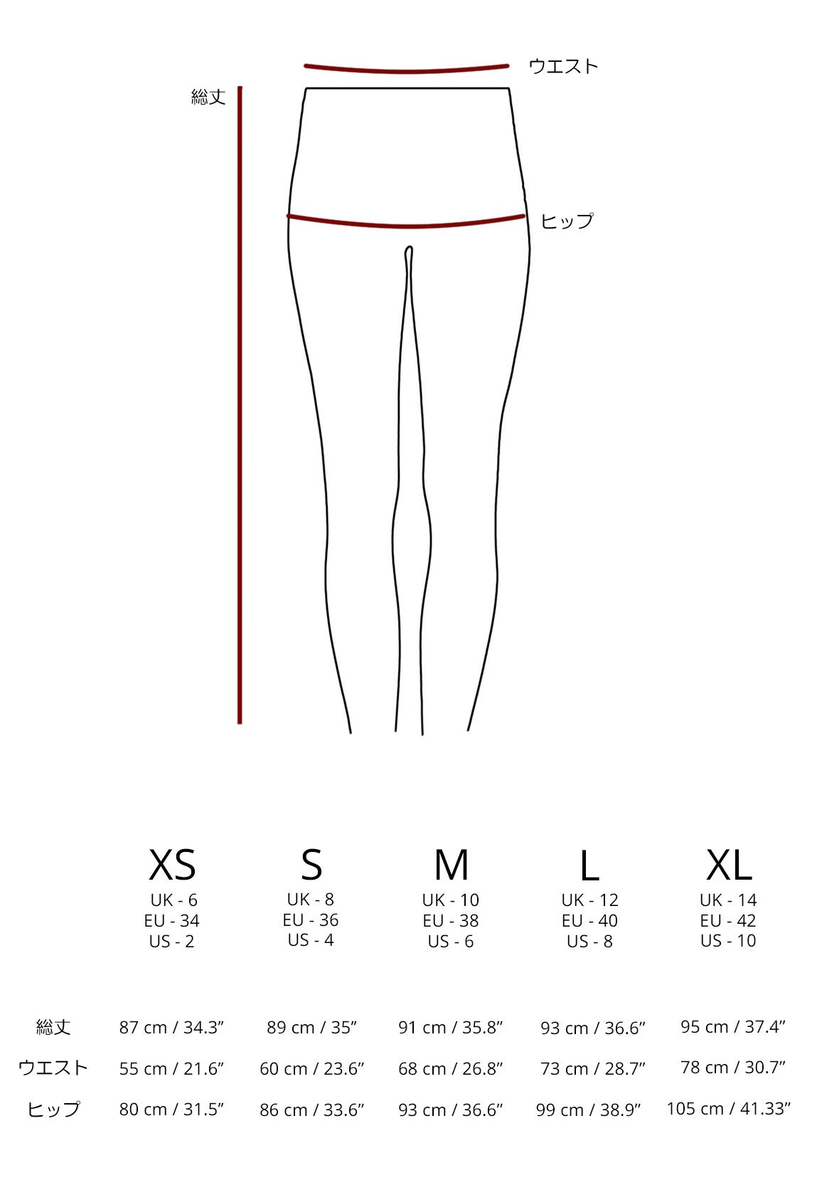 *レディースレギンスサイズ表記:センチ / インチ