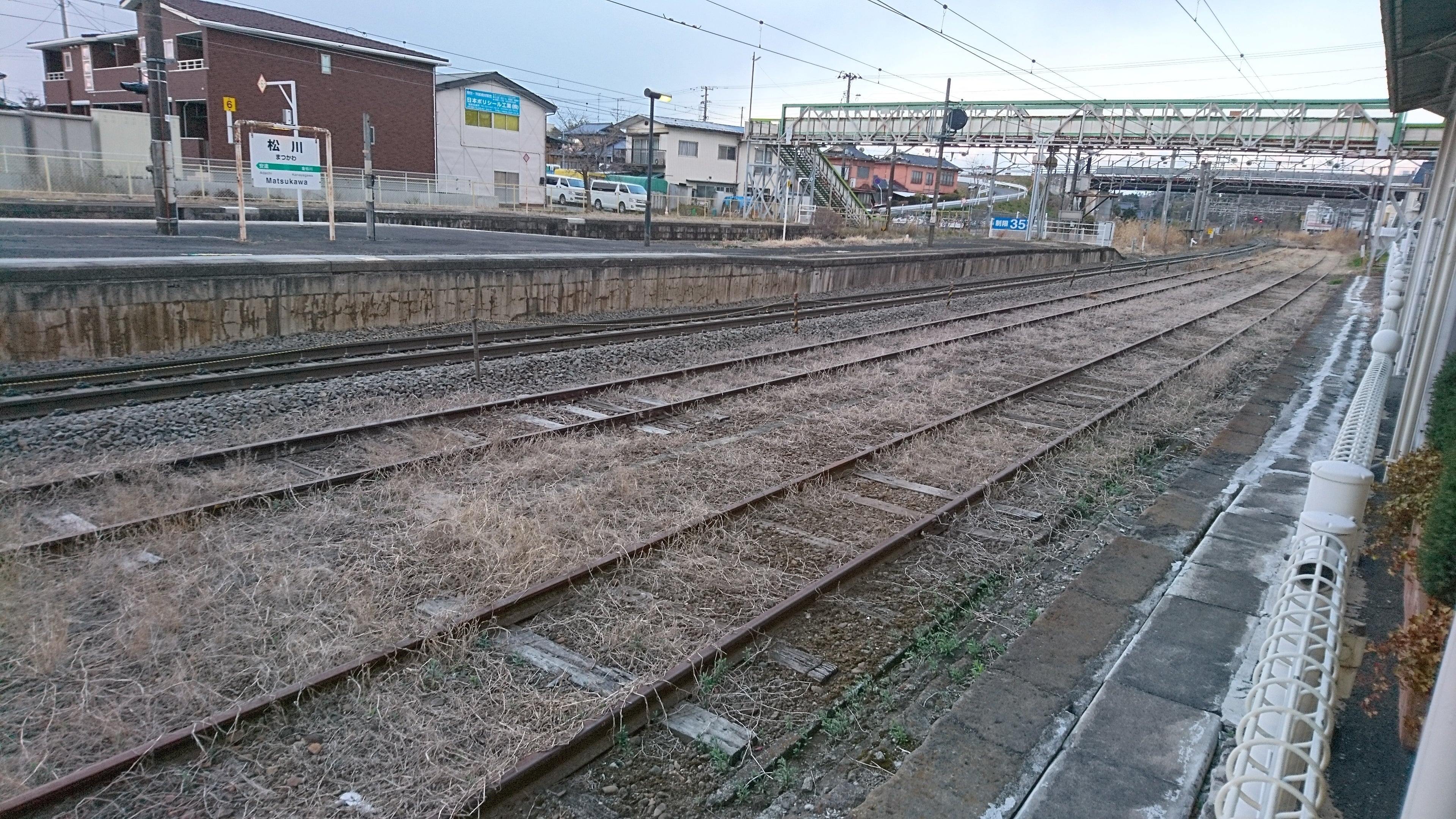 松川駅は、養蚕が盛んだった川俣町への起点駅として栄えましたが、養蚕の衰退とともに川俣線が廃止され、電車の発着しない1番ホームだけが、当時の面影を残しています。
