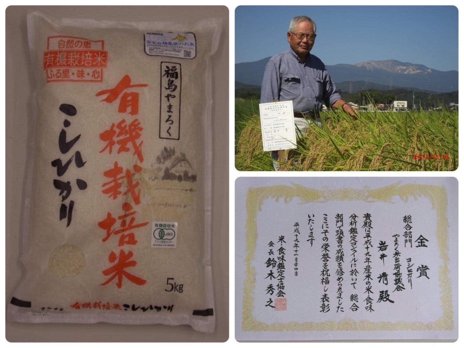 20年以上、農薬と化学肥料を使わない栽培をしている岩井さんのお米です。リュウマチの奥様の病気と向き合ううちに、米栽培の農薬が、病気の原因ではないのかと考えたのがきっかけです。食べる方の健康はもちろん、美味しさの追及にも余念が無く、米・食味分析鑑定コンクールで、2007年総合部門金賞、2014年総合部門特別優秀賞を受賞しています。数が少ないため、限定品となります。