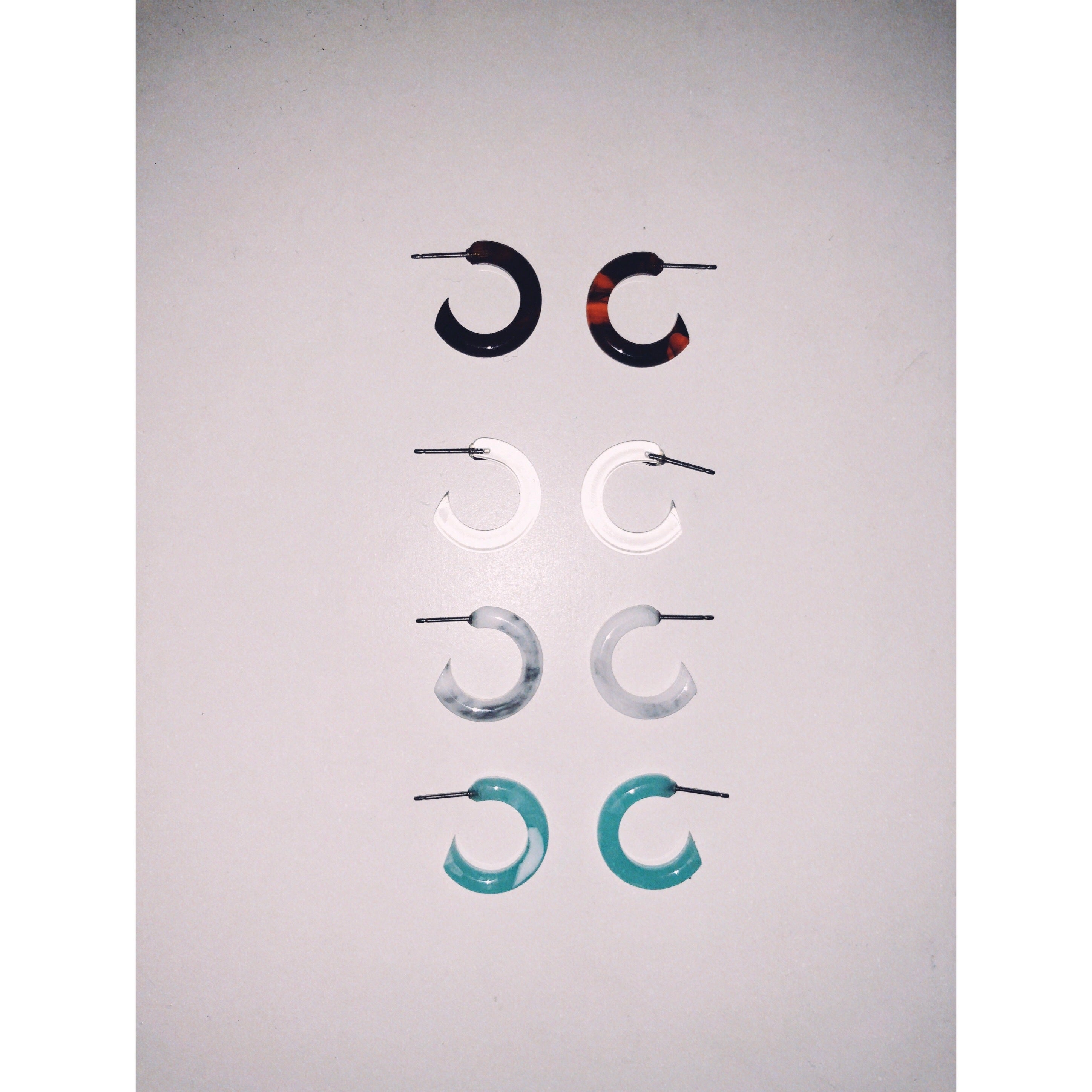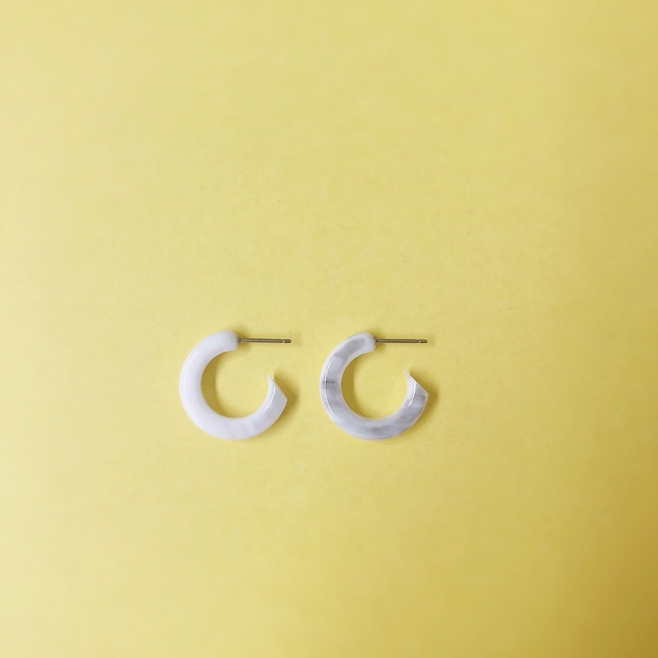 こちらの画像は僕が最初に作成しましたアクリル素材のフープピアスになります。