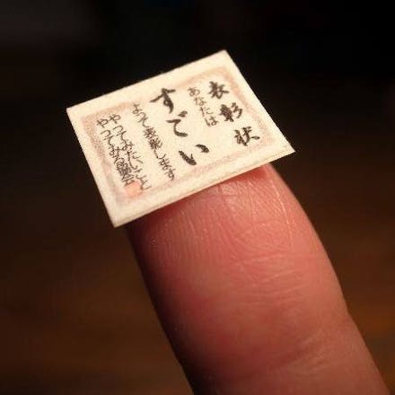 「こびと表彰状」は1.1×1.4cmの非常に小さい和紙で出来たステッカーです。