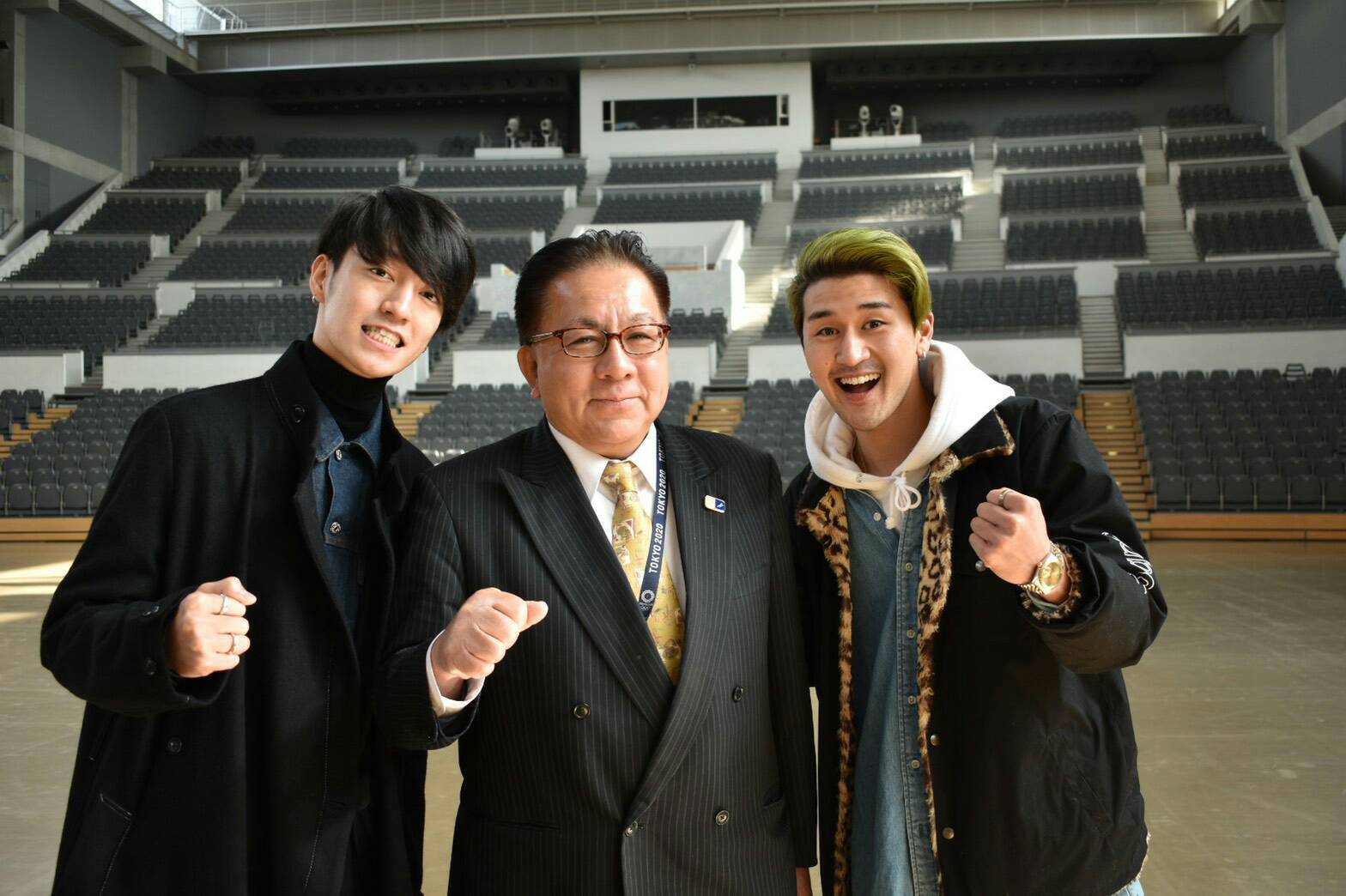 (別府ビーコンプラザ井上館長とライブの成功を誓いました!)