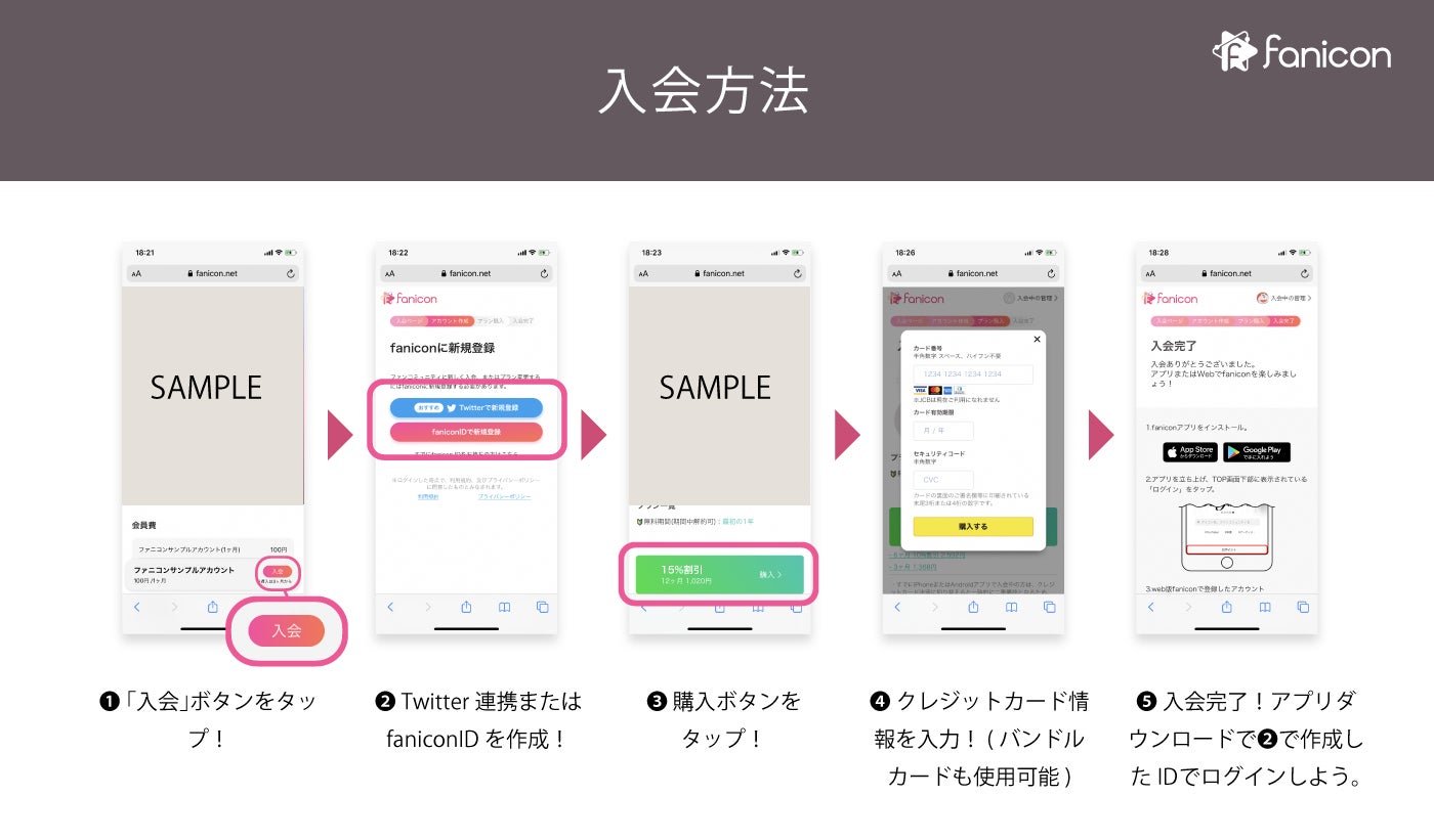 VIP会員3,000円/通常会員500円(税込) ※クレジットカードまたはコンビニプリペイド決済での受付となります。 プリペイドカードとは:利用者があらかじめカードに現金をチャージし、その範囲内でクレ ジットカードと同じように利用できるカードです。 ※入会は3ヶ月、12ヶ月(10%OFF)プランからお選び頂けます。 ※利用についての詳細はコチラ https://fanicon.net/prepaid ※お問合せについてはコチラ info@fanicon.net