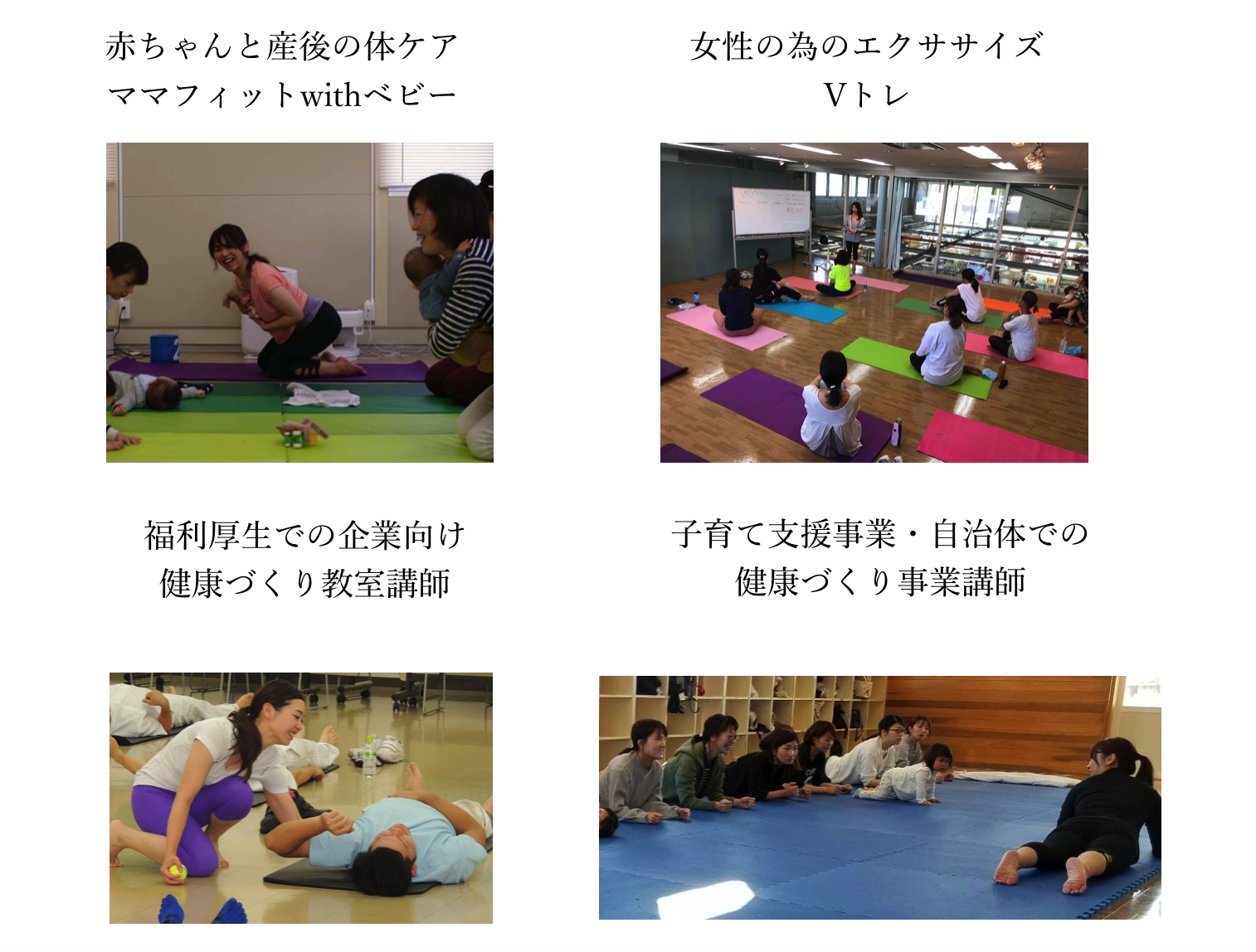 主にダイエットを通して、健康的な体をつくるエクササイズやセミナー講師や、女性の身体の機能回復を助ける運動指導をしております。