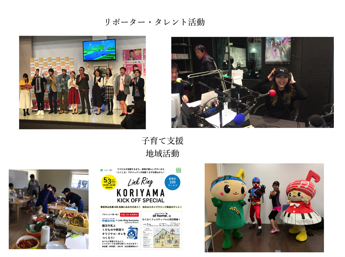 また、たくさんの人に健康についての情報を発信するために、福島県内のテレビリポーターやラジオパーソナリティーとして、メディアでも活動しています。