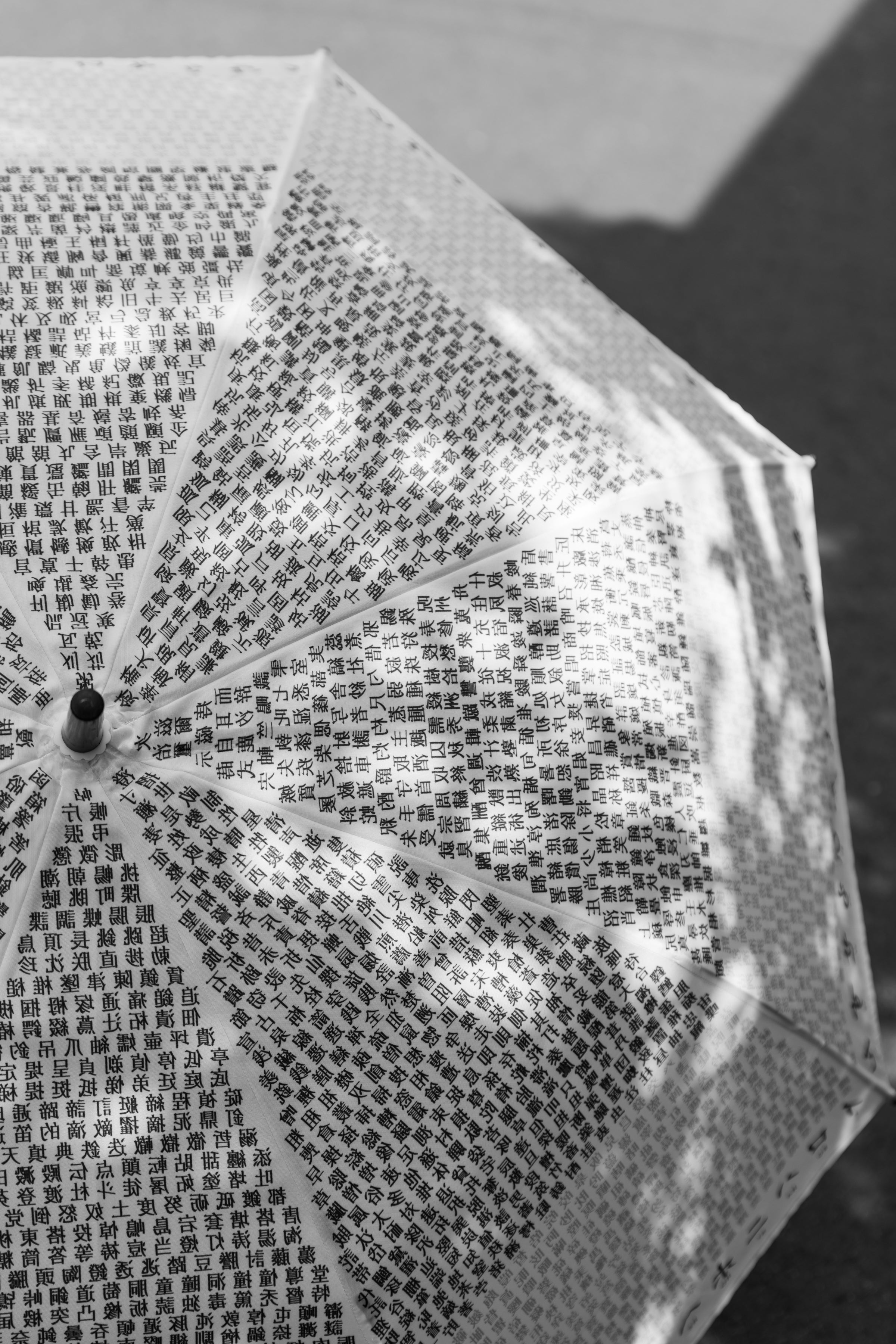 ”文字を残す”というコンセプトのもと、デジタル収録された全6355文字を1本の傘に配置するという膨大な作業がはじまりました。この文字数が多いのか少ないのか判断に迷うかもしれませんが、現在日本の小学校、中学校で習う漢字は合わせて2136文字です。その約3倍の漢字が、たった一本の傘にすべて印刷されていることになります。習ったことがない漢字、見たこともない漢字がきっとたくさんあるはずです。