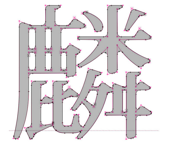墨溜(すみだ)まり処理がされているのも特徴です。拡大すると、全ての角が丸く柔らかく処理されているのがわかります。滲んだような雰囲気で明治期の活版で刷ったインクのような風合いを持ちます。