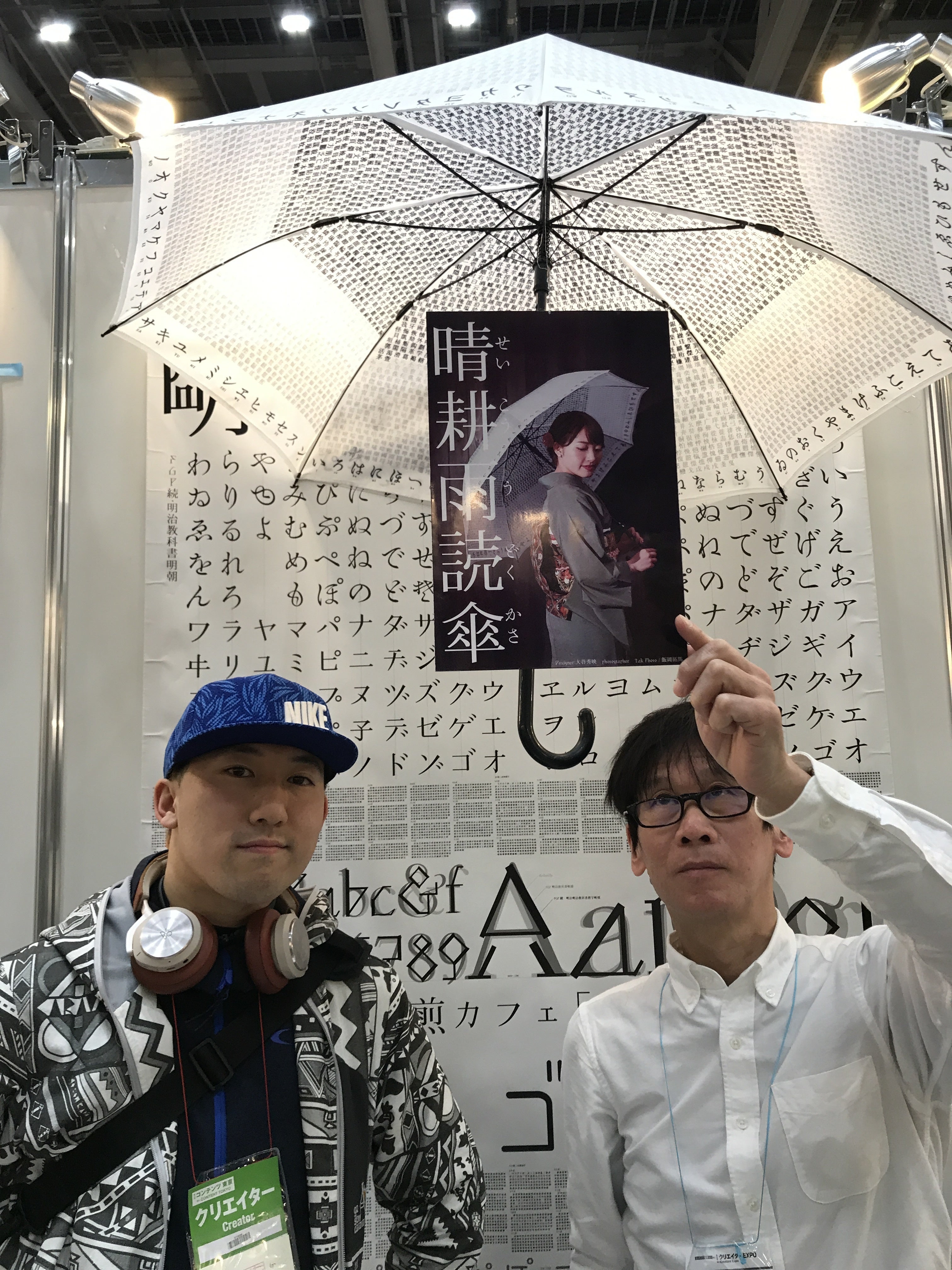 ■コンテンツ東京2019内のクリエイターズEXPOで晴耕雨読傘のプロトタイプ展示中です。■日時:2019/4/3(水)〜4/5(金)10:00〜18:00■場所:東京ビッグサイトさわぐちさん(左)大谷さん(右)※コンテンツ東京へお越しの際は、是非お立ち寄りください!