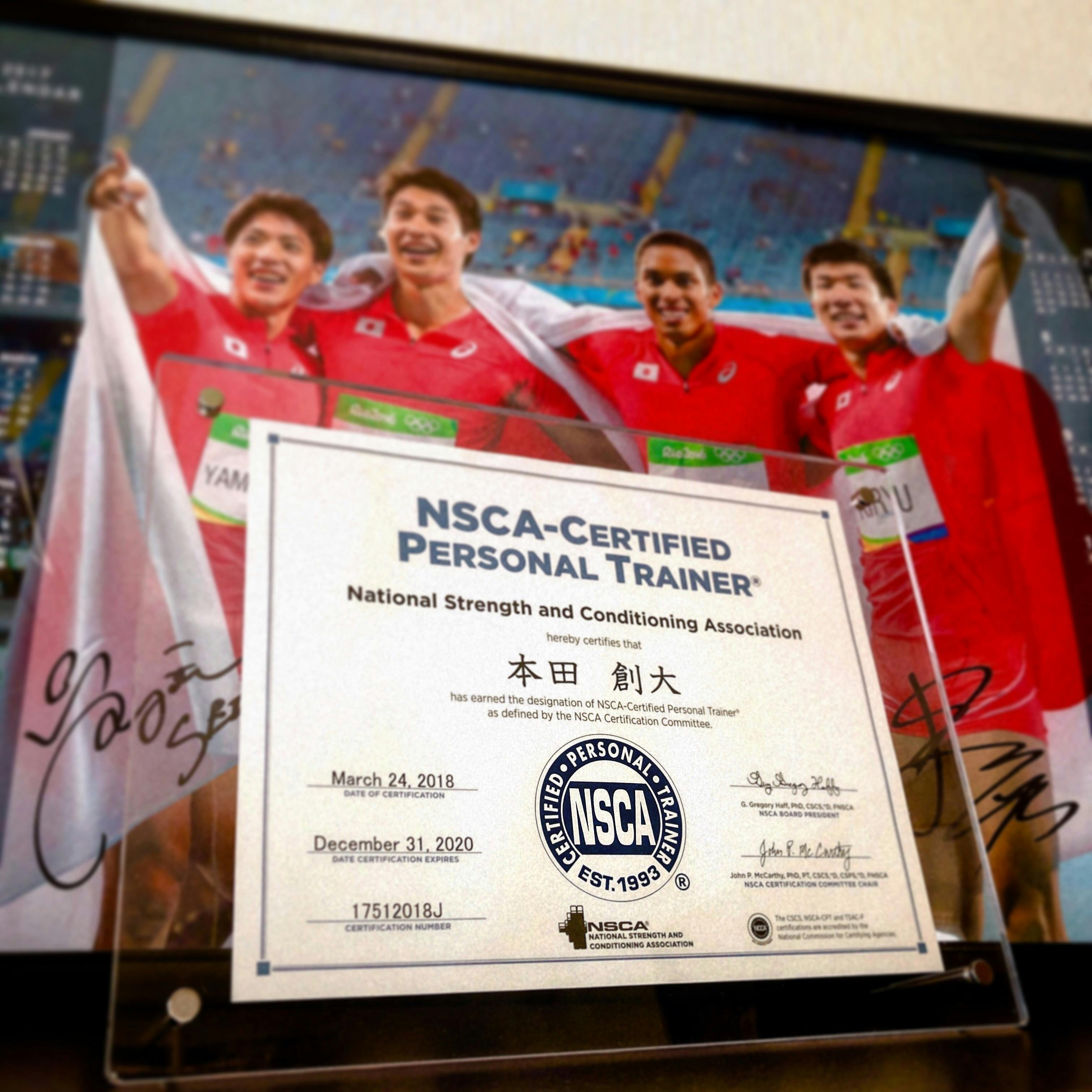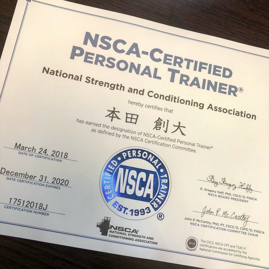 2018年3月:NSCA認定パーソナルトレーナー取得(大学3年次)
