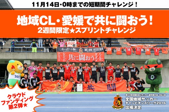 地域CL1次リーグは11/11〜13で開催されます。今回のチャレンジは2週間の短期間、14日0時(13日23:59終了)までの期間でクラウドファンディングを実施させていただきます。目標額は30万円に設定しました。