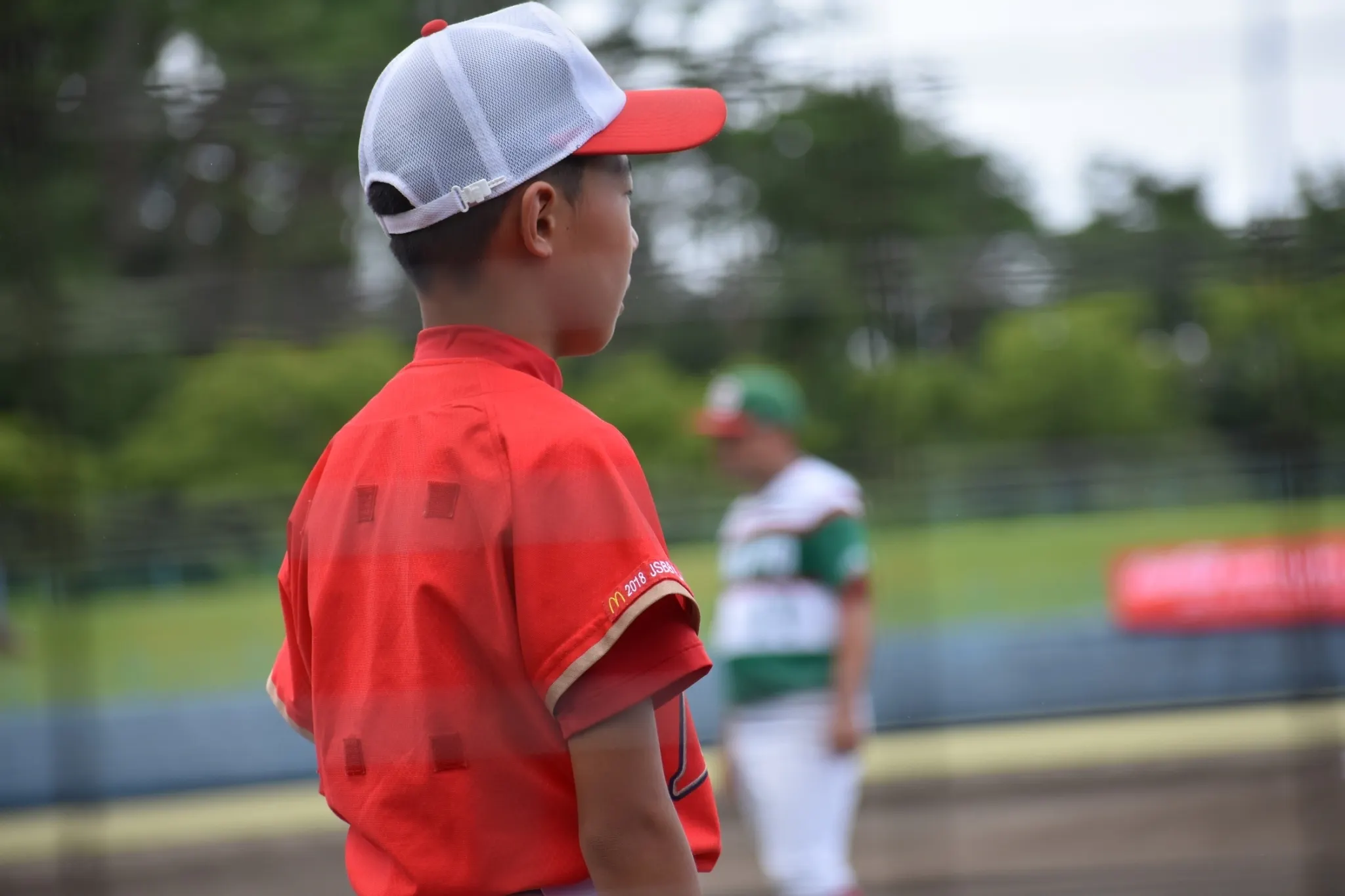 間近でプレーを見届ける地元の小学生選手