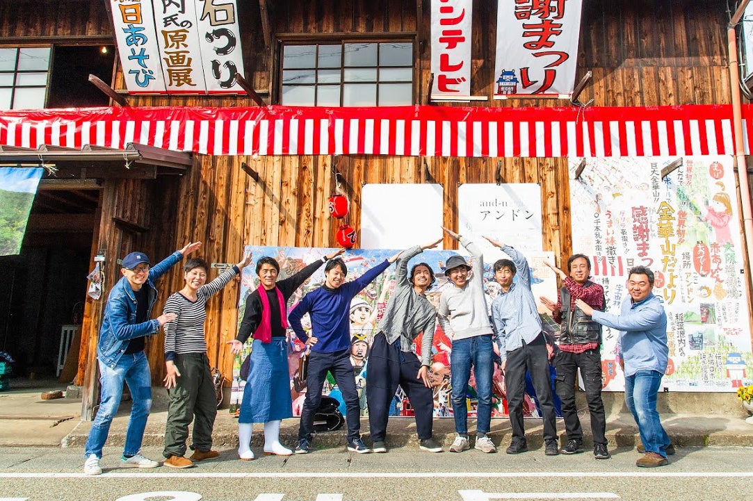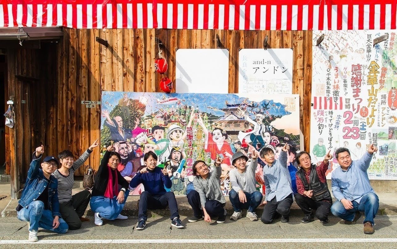 旧木材倉庫『&n』の前で、長良川リバースケープのメンバーと。