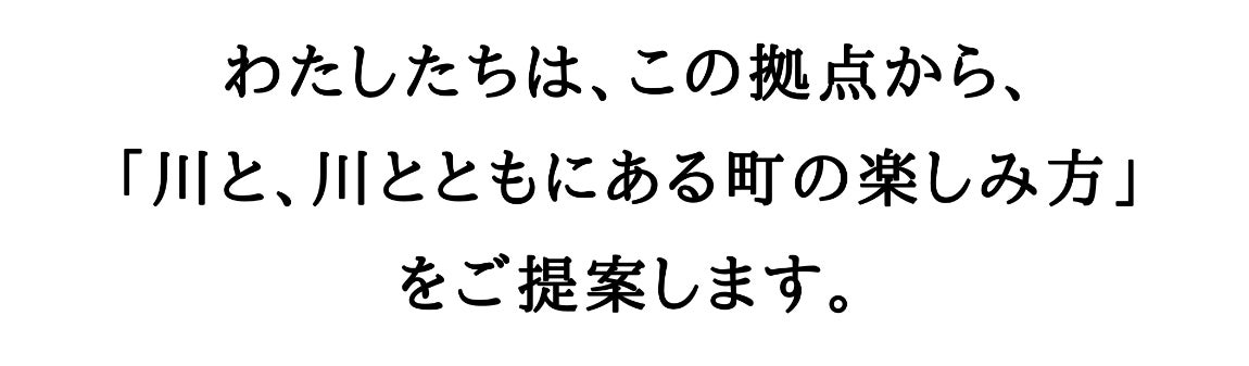 私たちは、『&n(アンドン)』を、町のひとが長良川をより身近に楽しめる拠点として位置づけます。ここを軸に、川を、町を、この地域を、楽しむひとたちが行き交う「動線」を生み出したいと考えています。