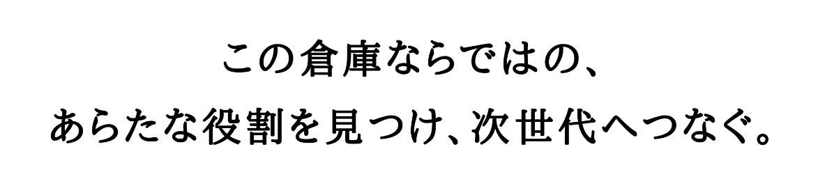 いよいよ正式オープンを間近に控えたいま、私たちは、この倉庫ならではの価値を大切に、この倉庫が担っていくあらたな役割を、多くの人たちとともに、見出していきたいと考えています。