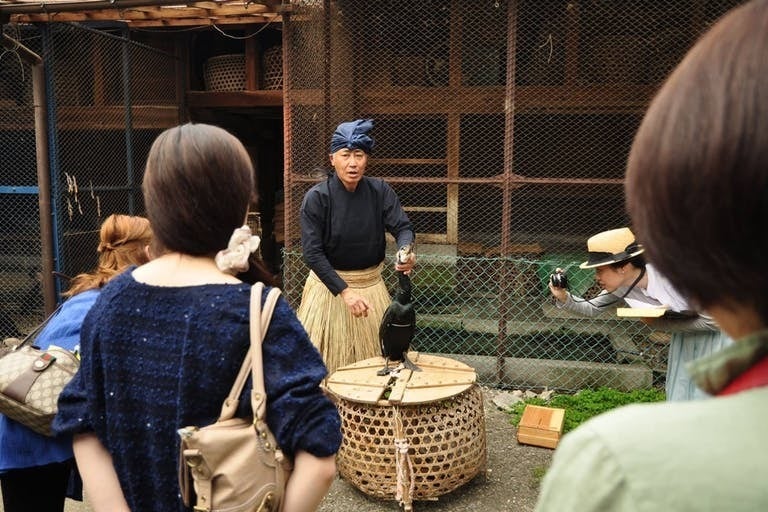 鵜飼屋まち歩き。(鵜匠さんのバックヤードに入れるのは、限定ツアーだけ)