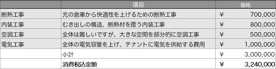 工事としては初期段階となる、「安全な場所づくり」を実現するためには、倉庫内の最低限の工事に、300万円を超える費用がかかる見込みです。