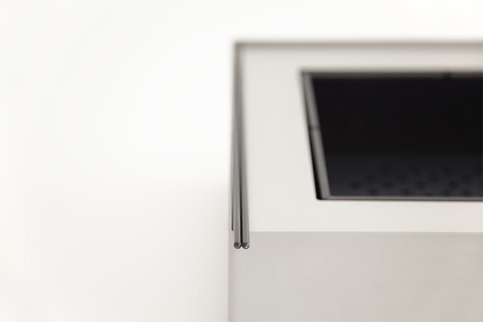 ないならば自分でつくってしまえと、一昨年の夏くらいから開発を始めました。七輪につかわれる珪藻土や大谷石、耐火煉瓦などの耐熱素材をほとんど試し、ステンレスが最適という結論に至りました。そしてシンプルにステンレス板を曲げることで完成したのが写真の商品です。伝統的な火鉢を現代の生活に合うようにアップデートしたという感じでしょうか。