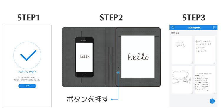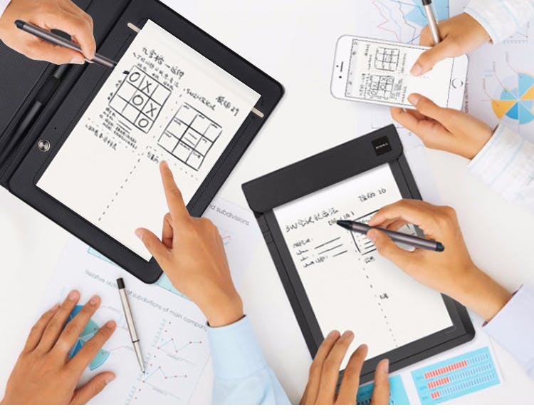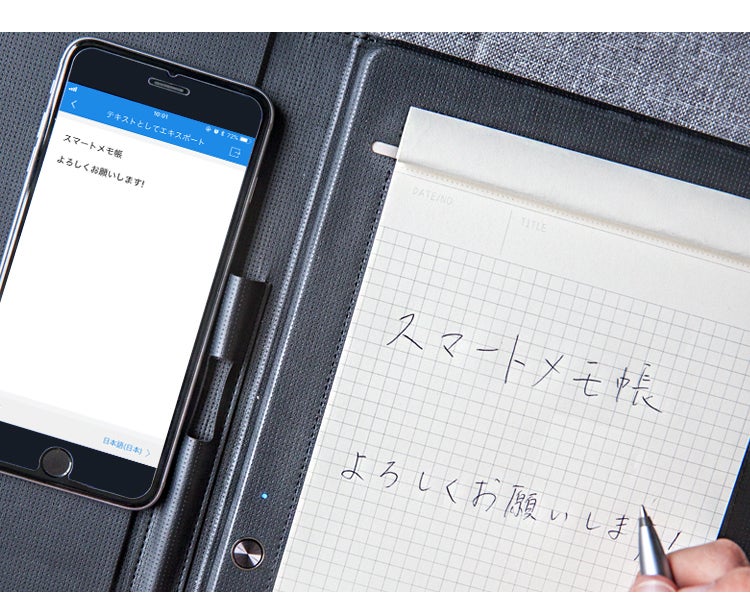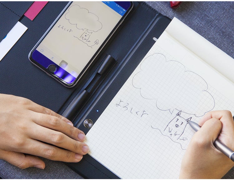 iOSとAndroid対応の専用アプリを利用すれば、ボタンを押すと一瞬で手書きメモや図をデジタル化でき、紙の上でペンを動かしている様子がデバイスにそのまま再現される機能も搭載。簡単かつ効率的にメモを残すことができます。