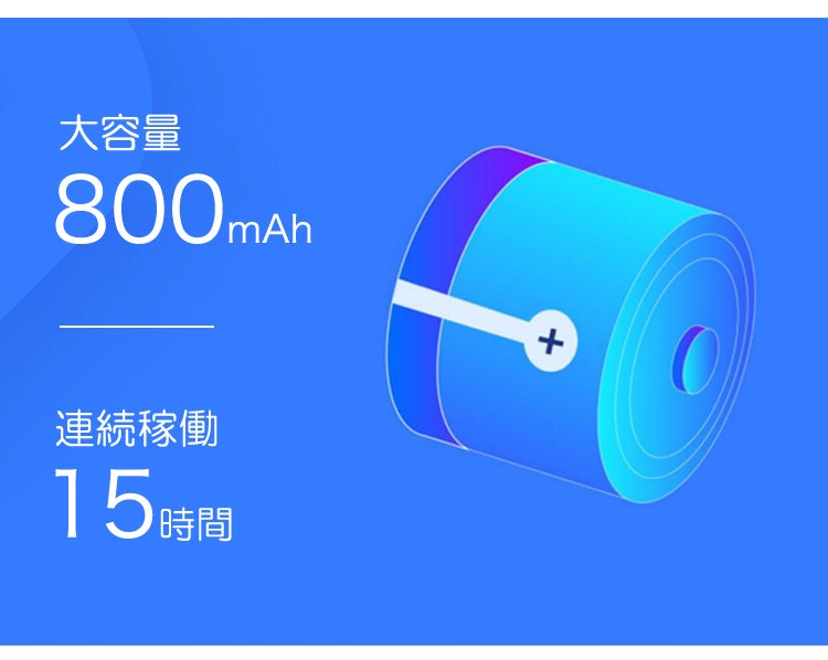 最大15時間連続稼動、600時間スタンバイする800mAhバッテリを内蔵しています。2週間以上充電せずとも安心してお使いいただけます。出張や外出先でも大変頼りになります。