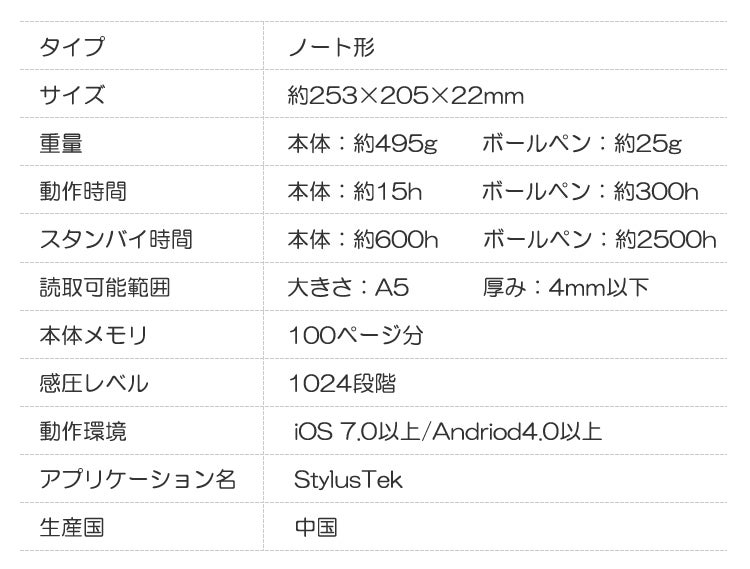 StylusTek本体メモリに最大100ページ分の内容まで保存できます。