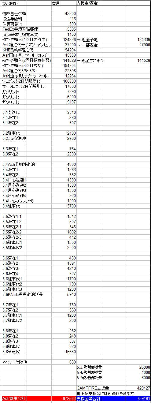 支援金(+イベント現地観戦入場料) +航空券/宿泊予約キャンセル返金 合計 759191円