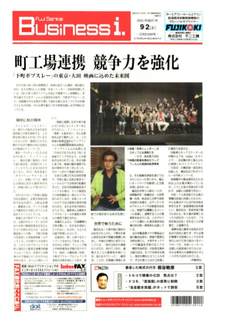 Fuji Sankei Business i.2015年9月2日(水) トップ 1面
