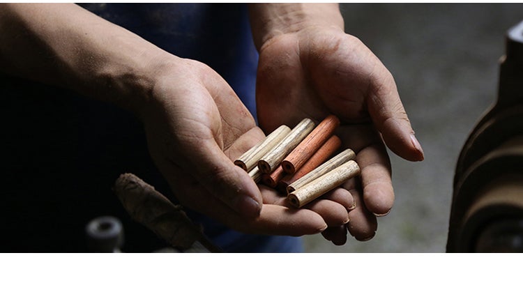 職人によってろくろで一本ずつ削り出されるセルロイドのボディは、懐かしさや温かみを感じさせてくれます。木の温もりを感じながら使い続けることで風合いが増し経年変化を楽しめる自分だけのオンリーワンとなることと思います。