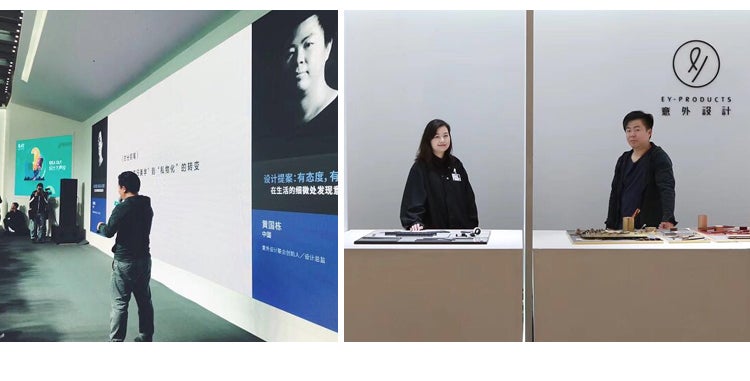 2010年には、E-Y Productsのブランドが確立され、その主な範囲は家庭用製品デザインとギフトデザインに集中しています。E-Y Productsの製品は色々な展示会に出展され、WALLPAPER、AD、ICON、DOMUS、360°、ELLE DECORATION、IDEATなど国内外の有名なプロメディアに掲載されています。今、E-Y Productsは国際的な一流のデザインブランドと競争することができる少数の中国のブランドになりました。さらに、中国だけではなく欧米のロンドンやニューヨークなどの実店舗で製品が販売されています。