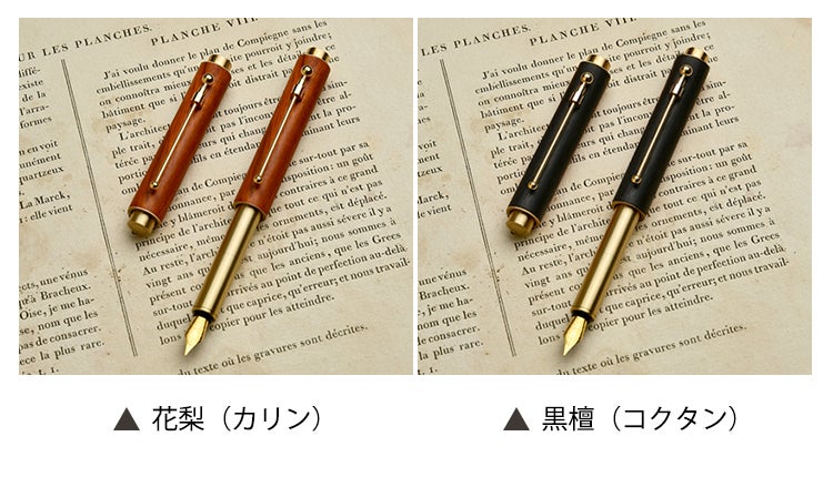「MINI FOUNTAIN PEN」はダークな色調を特徴とする花梨(カリン)やエボニーウッド(黒檀)などを軸胴に採用。どこか懐かしく温もりのある自然な感触が心地よく、銘木が持つ本来の美しさや艶を楽しむことが出来ます。
