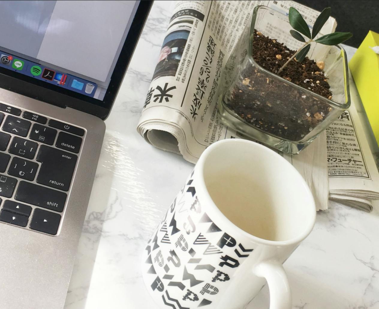 植物ポットを並列で展示/ある程度の大きさで統一