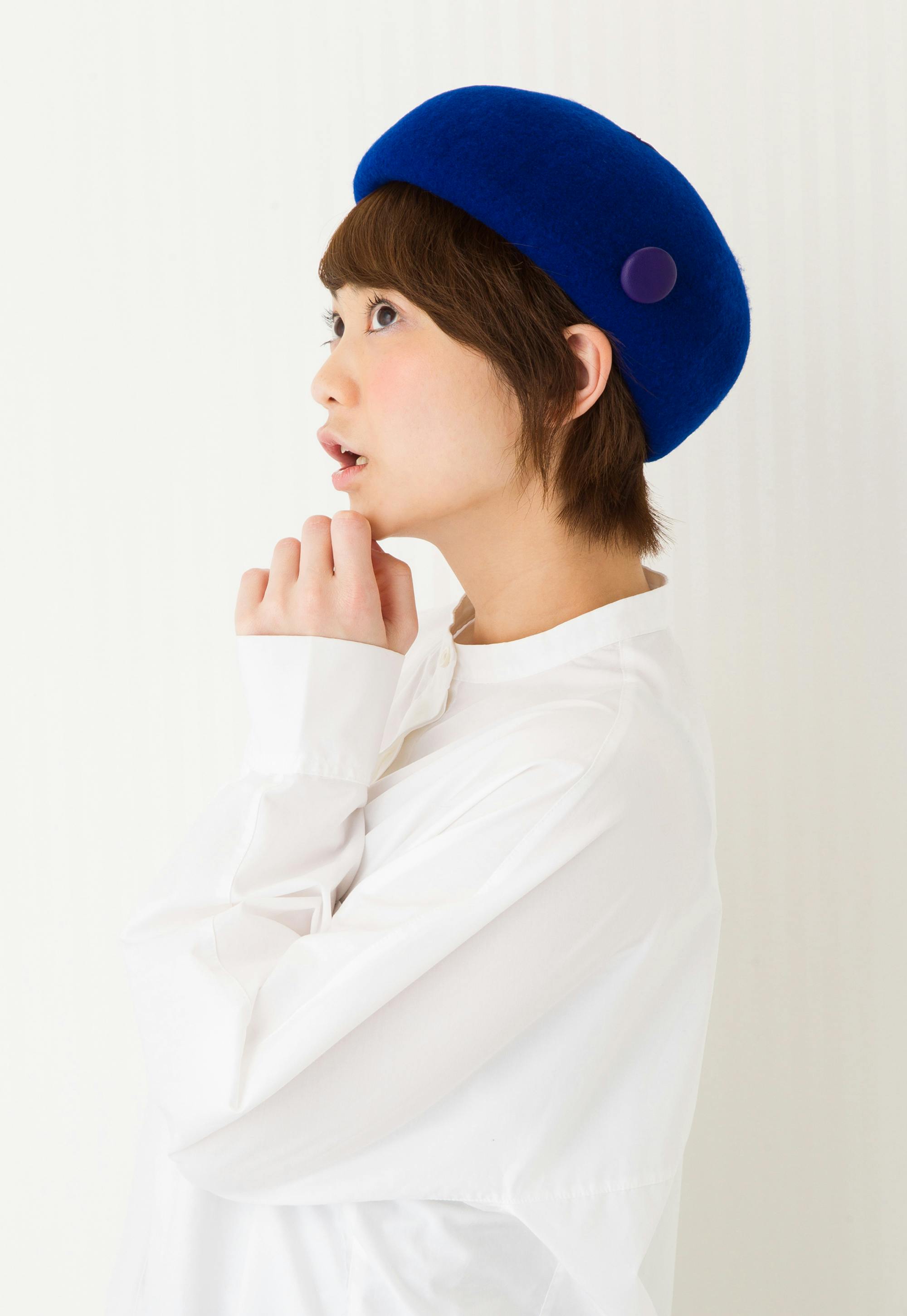 青紫色でまとめられたベレー帽で、 ブルーベリーの先端の部分とくるみボタンはレザー(牛革)を使用しています。