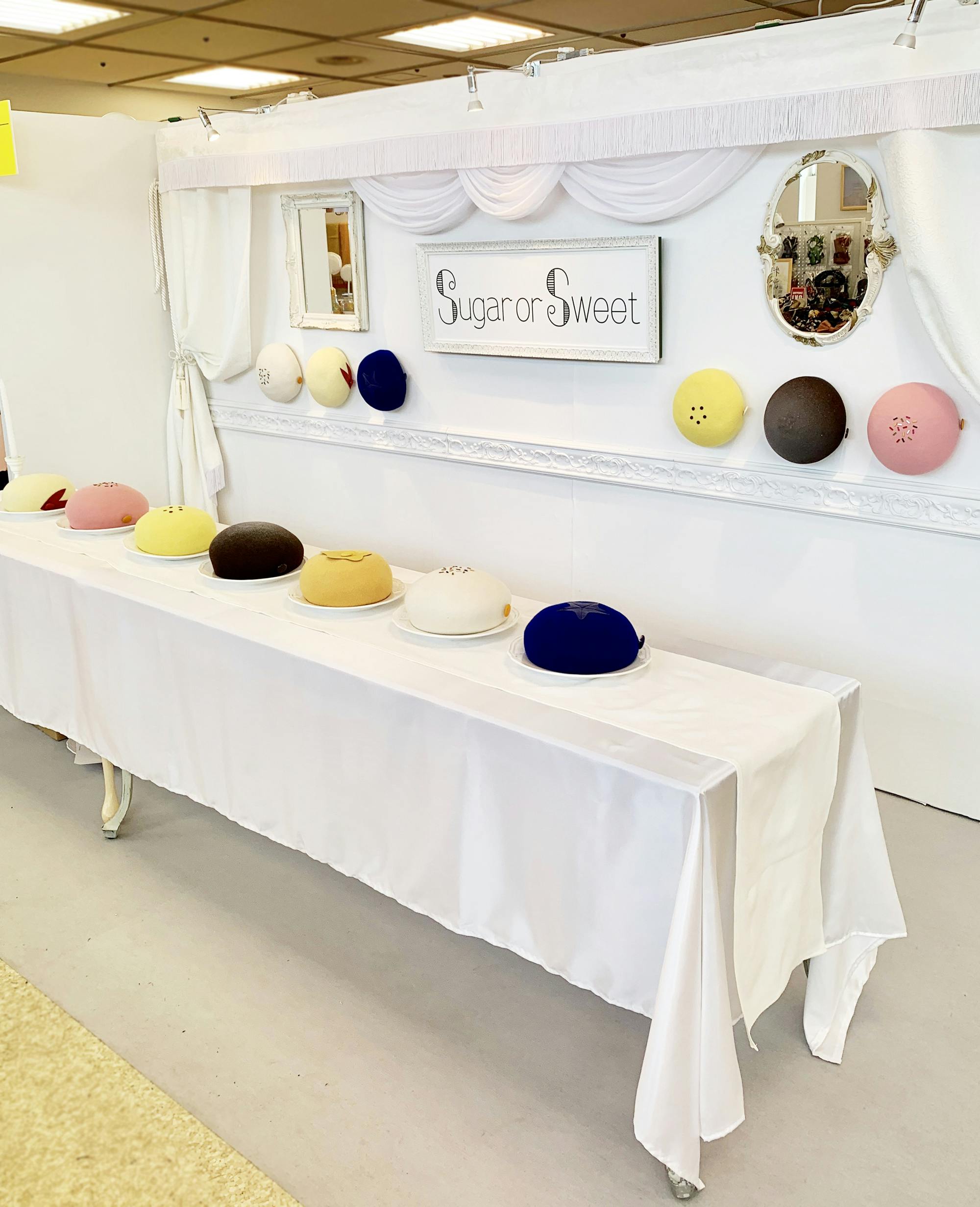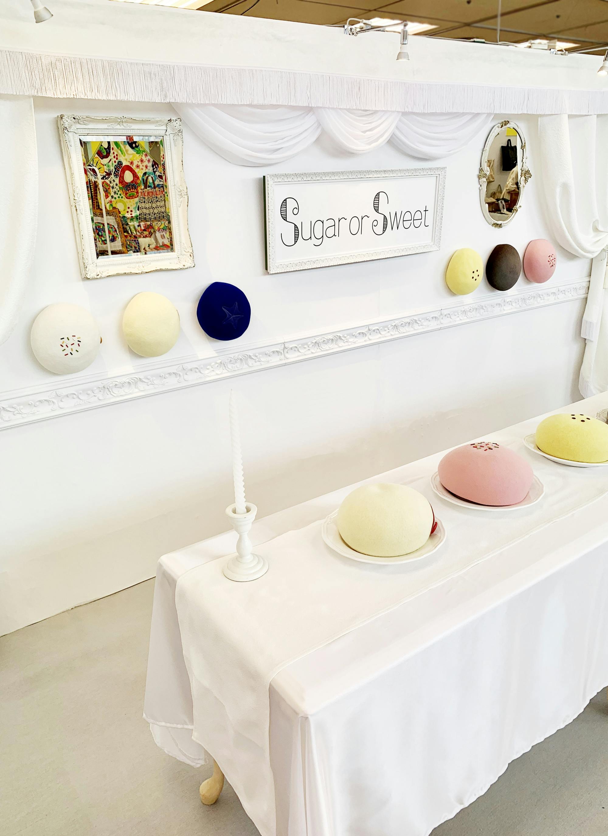 sugar or sweetのお披露目として出展したこの展示会では、「舞台」をテーマに、帽子のカラフルさを引き立たせるために、まっ白な空間を演出しました。