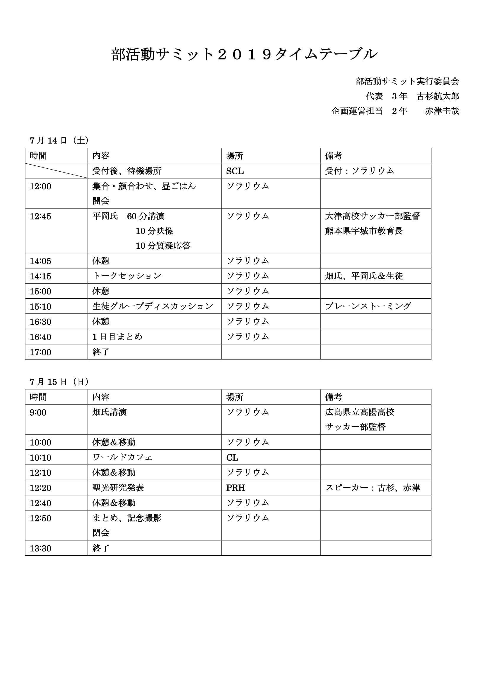 2019/07/01 15:027月14日・15日のサミット タイムスケジュール(案)です。招待校の皆様へ 宿舎は世界遺産三保の松原近くを抑えております。ご不明な点がございましたらメッセージでお問合せください。 もっと見る