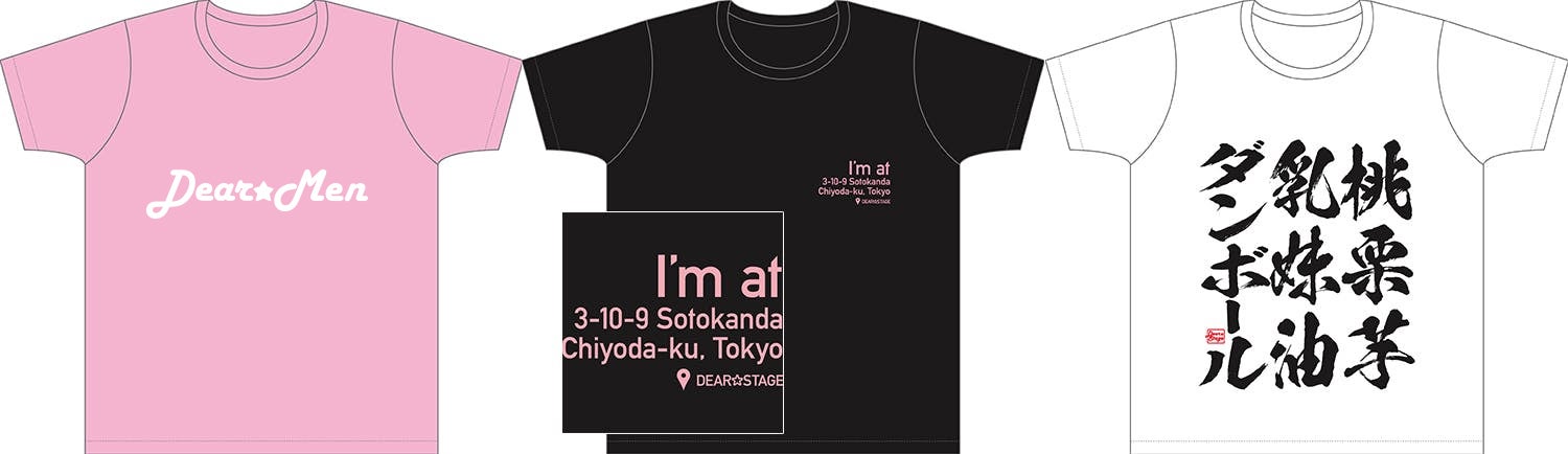 Aタイプの、カタカナでの「ディアメン」というロゴが「ディア☆」関連商品と誤認を招くのではないかというご意見をいただき、あくまで「ディアステージ」全体を応援いただいている皆様が「ディアメン」であるという前提から、特定ユニットの連想を避けるためフロントデザインに関しては店舗ロゴと同じ英字表記の「Dear★Men」ロゴへ変更させていただきます。改めてご確認の上デザイン選択のほどお願い致します。あしからずご了承お願い致します。