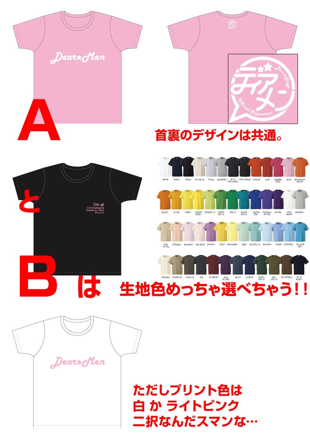 ③A or Bの方はお好きなプリント色をホワイト or ライトピンクから選んでね!