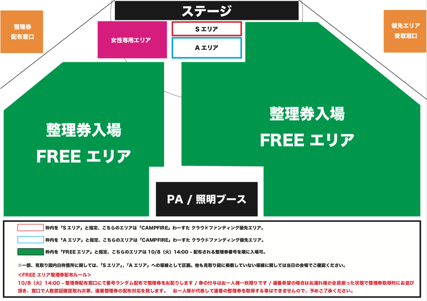 2019年10月08日(火)わーすた FREE LIVE “ゆうめいに、にゃる!!!!!”会場全体図面を公開いたしました!!FREEエリアの整理券配布ルールも追加になっております!<FREEエリア整理券配布ルール>・お一人様につき、1枚の配布となります。・連番希望のお客様は、同行されるお客様と一緒に整理券配布待機列に「人数揃った状態で」 お並び頂ければ、人数分の整理券を配布させて頂きます。※代表して1名がまとめて整理券を受け取る事はできませんので、予めご了承ください。#わーすた1008 みなさんで楽しいライブにしましょう!!!!