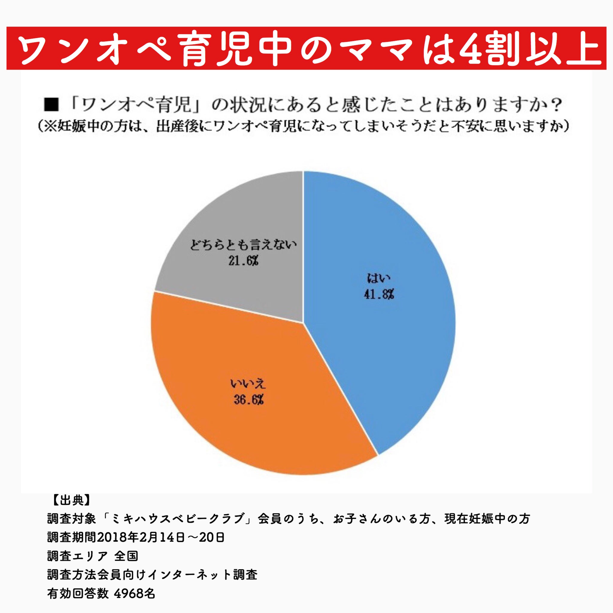 調査によると、実に4割を超えるお母さんたちが、自分はワンオペ育児の状況にあると感じたことがあると回答しています。