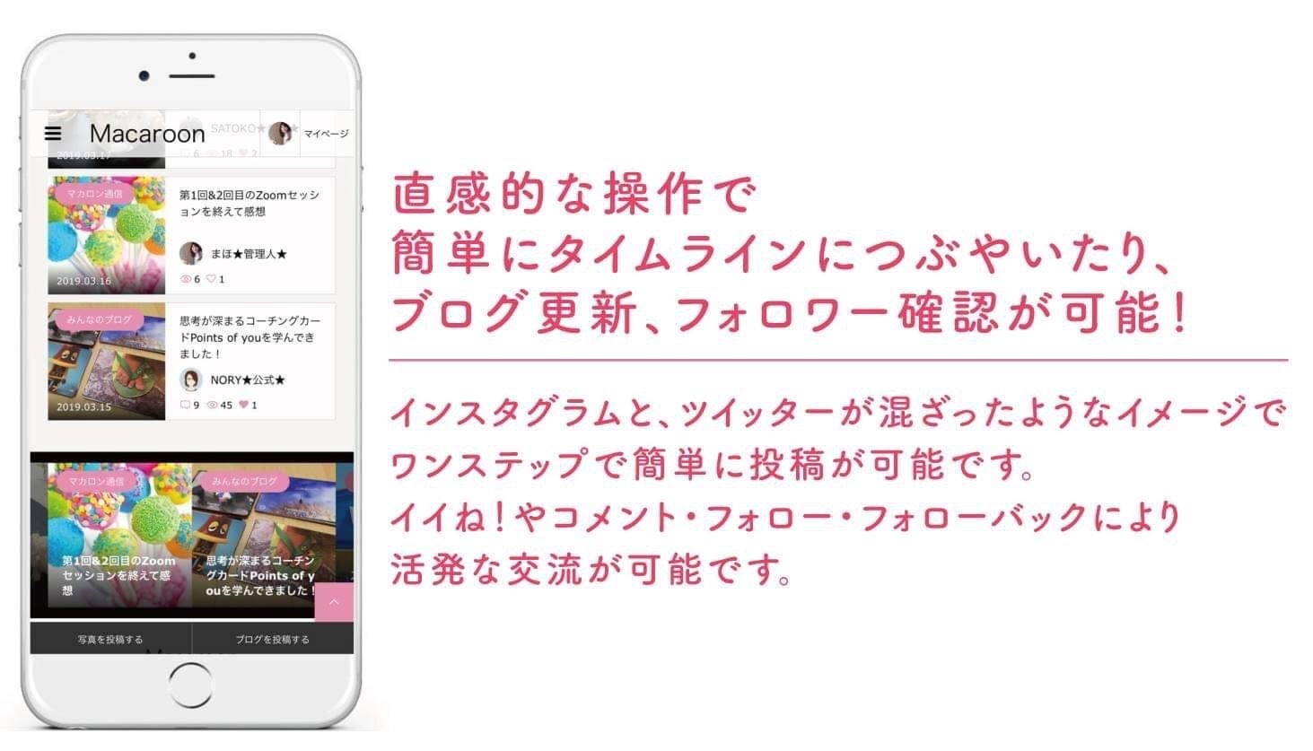 マカロンが普通のSNSと異なるのは、ワンオぺ・孤育て中のママ同士が自由に交流し、応援しあえるSNS機能が付いている点はもちろんのこと、