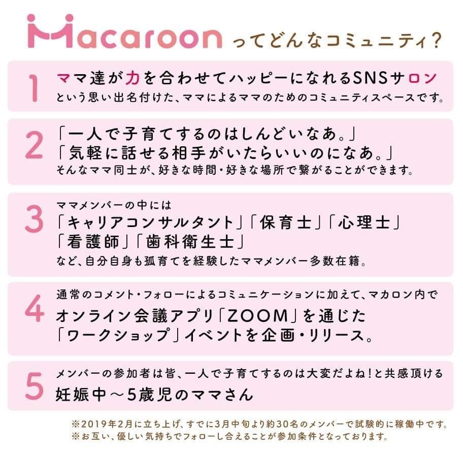 そして、2019年2月に「ワンオペ育児中のママのためのSNSコミュニティサロン・マカロン」
