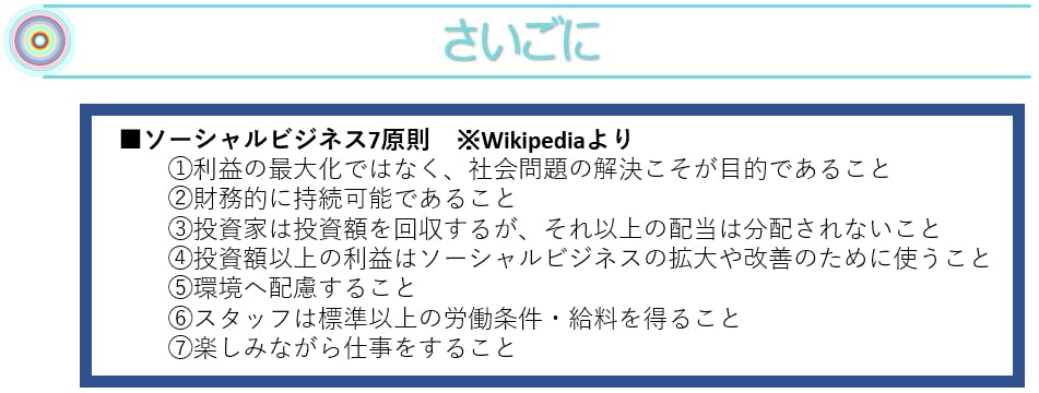 上記、ソーシャルビジネス7原則の「⑥スタッフは標準以上の労働条件・給料を得ること」がありますが僕は他に収入を得ていますので、この条件を満たす事を目的としません。
