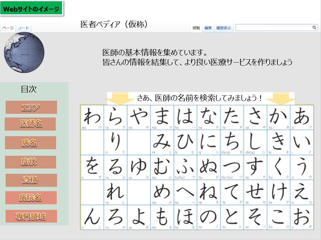 医師版Wikipediaプロジェクトの目的は「①利益の最大化ではなく、社会問題の解決こそが目的である」が再優先されます。それをご了承頂いた上で、アドバイスして下さる方、協力して下さる方、プロジェクトに参加されたい方がいらっしゃれば是非ご連絡頂きたいと思います。※特に医師、エンジニア、プログラマー、法律関係士業の方はお力添え頂ければ有難いです。