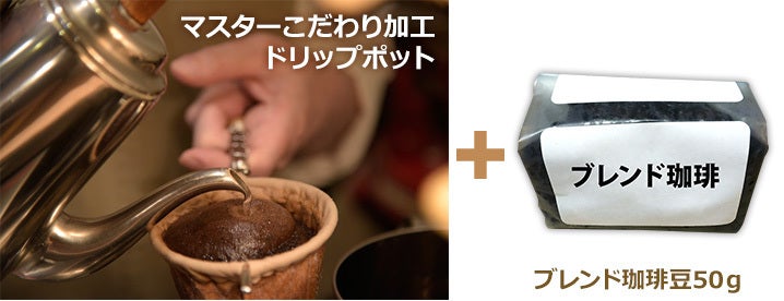 珈琲を淹れるためにとことんこだわったドリップポットにブレンド珈琲豆50g(約3~4杯分)をお付けしたコースです。
