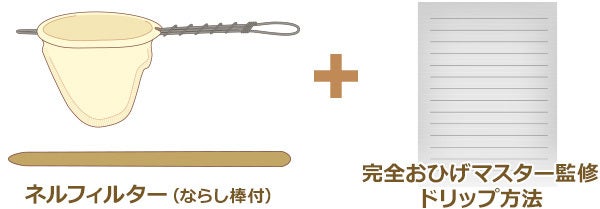 本格的珈琲が簡単においしく淹れられる完全おひげマスター監修ドリップ方法、ネルフィルター取り扱い説明書もお付け致しますのでご安心ください。