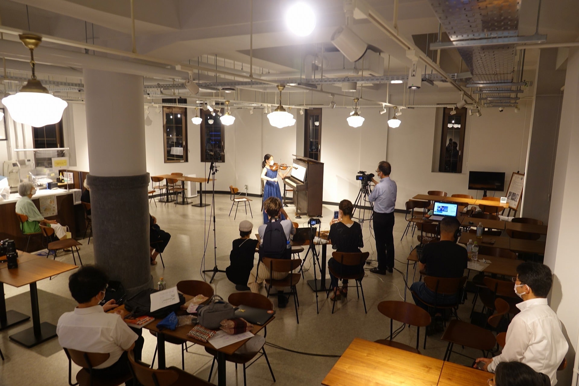 後半は、イタリアの音楽留学から帰国したばかりの三原有紀さん(ピアノ)、ノートルダム清心高校3年生の坂直さん(バイオリン)の共演が行われました。子どもたちも多く視聴するということで、なじみの曲目を選び、祈るように、一曲一曲丁寧に、優しい音色を奏でました。まるで、明子さんやパルチコフさん、そしてその日に亡くなった方々に、届けているようでした。