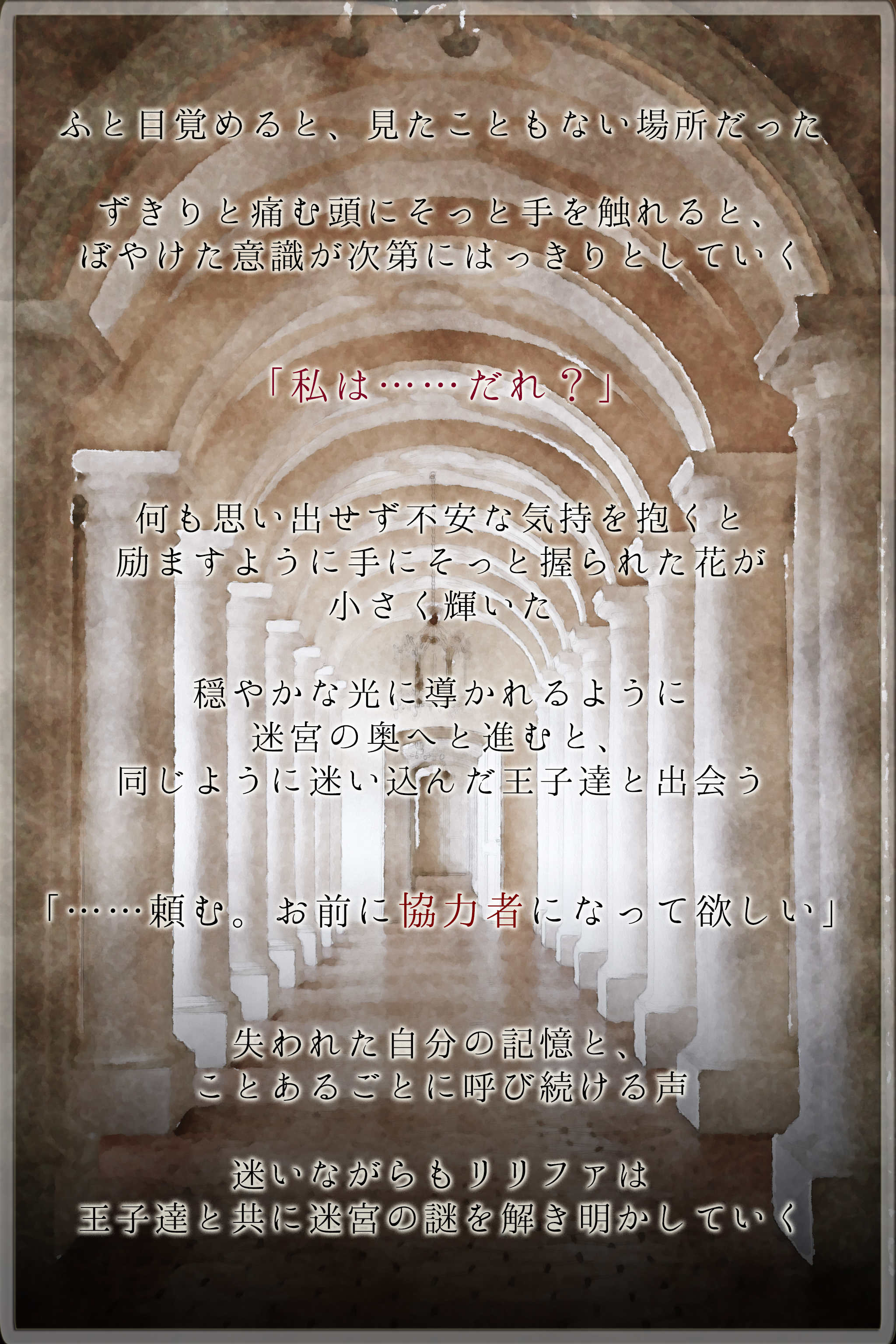 本作は記憶を無くし迷宮へと迷い込んだ主人公と、一癖も二癖もある国を収める王子たちが織りなすダークファンタジー脱出ゲームです。