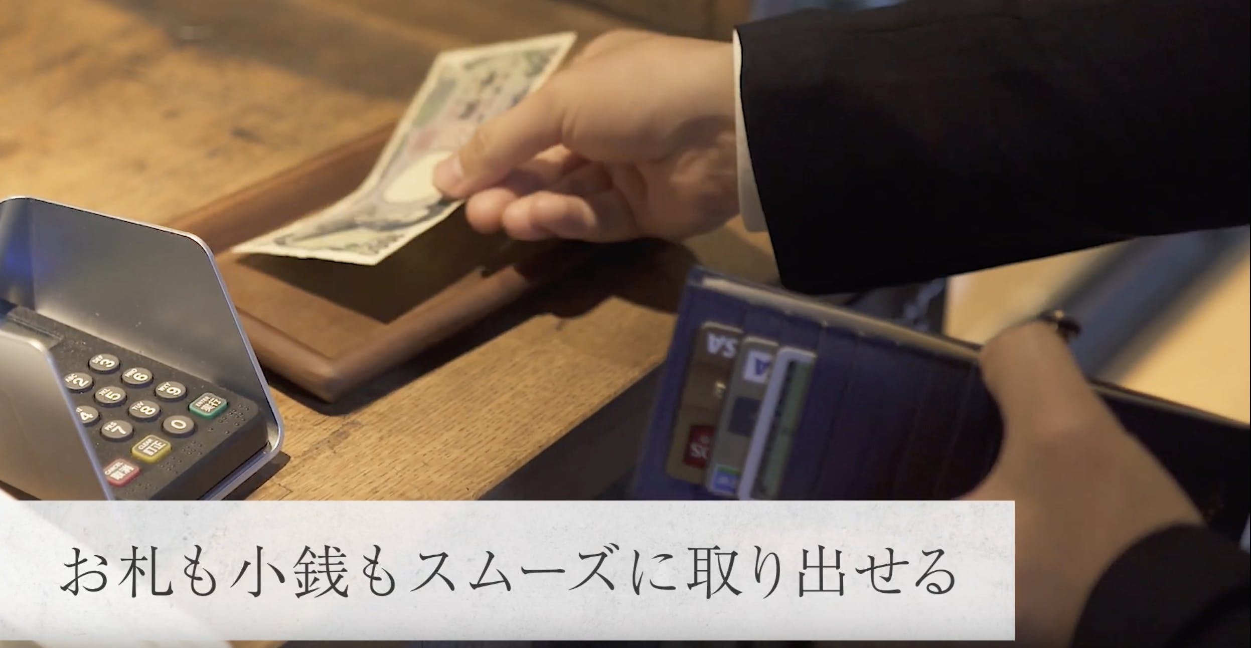「ASHITA」シリーズなら最低限必要な現金やカードを収納でき、かさばらないのでストレスフリーに持ち歩き、サッと決済を完了することが可能です。