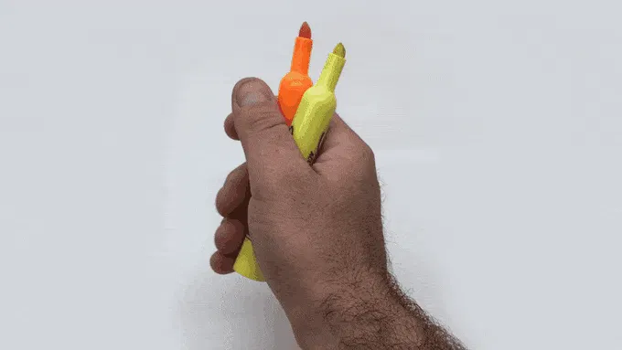 2つのハイライター(干渉を防ぐためにキャップを外したもの)または同様の直径の円筒形の物を持ち、この操作を行います 。